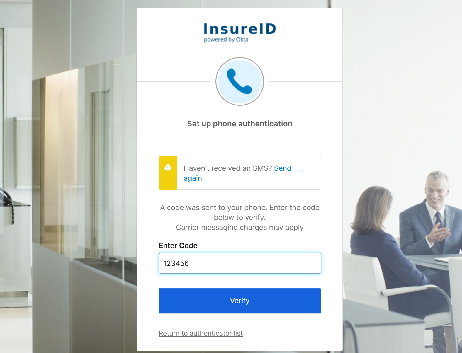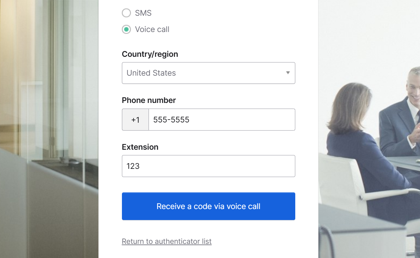 SMS authentication uses the text messaging service on your mobile phone. Voice Call calls your smartphone or landline and reads an access code aloud.